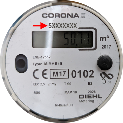 Numéro de compteur D'EAU CHAUDE Ou trouver mon numéro de compteur? Le compteur se trouve dans votre appartement.8 chiffres d'identification indiqués par la flêche rouge: